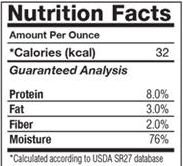 (有機),雞肝(無激素),牛油瓜(澳洲),蕃薯(美國),蘿蔔(法國),綠豆 (有機),菠菜 (美國),蘋果(澳洲),Furry Kitchen Nutrient Blend ,牛至(有機), 野生三文魚油(有機)